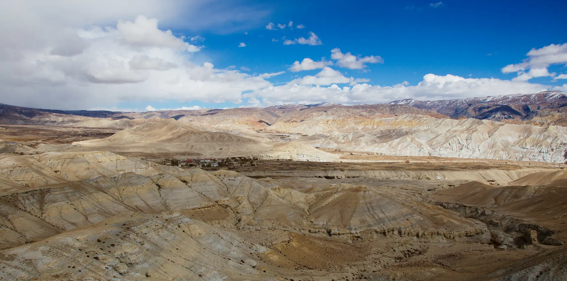 The gigantic rock walls of Dhaulagiri and Annapurna I surrounding Upper Mustang don’t let the rain clouds reach the region, making the Upper Mustang trek feasible even in the summer/monsoon season in Nepal.