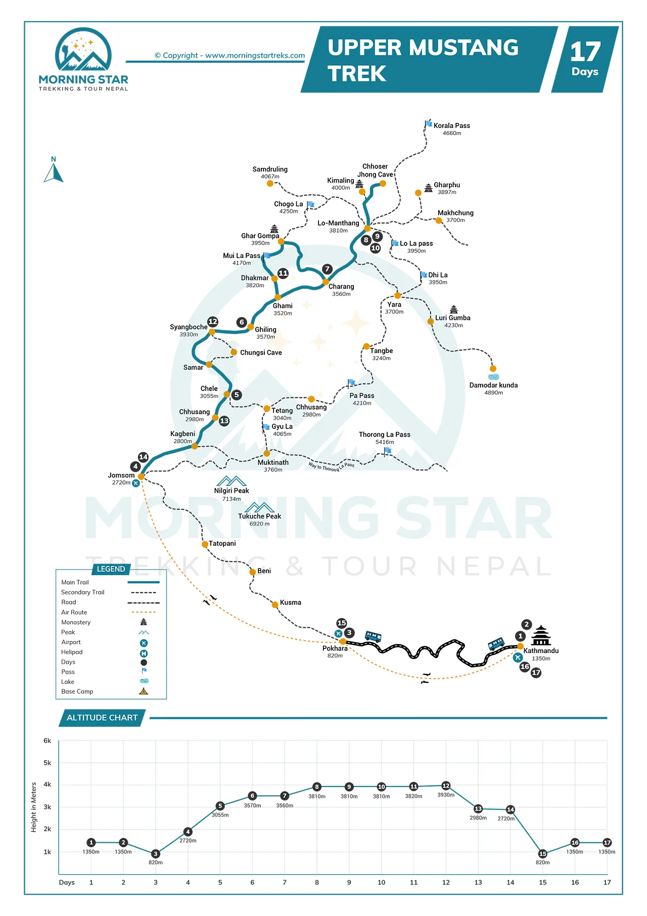 Upper Mustang trek needs a restricted area permit, which will be checked frequently from Kagbeni. Remember, only a certified travel agency like Morning Star Treks can apply for this permit in the Nepal Immigration Department.